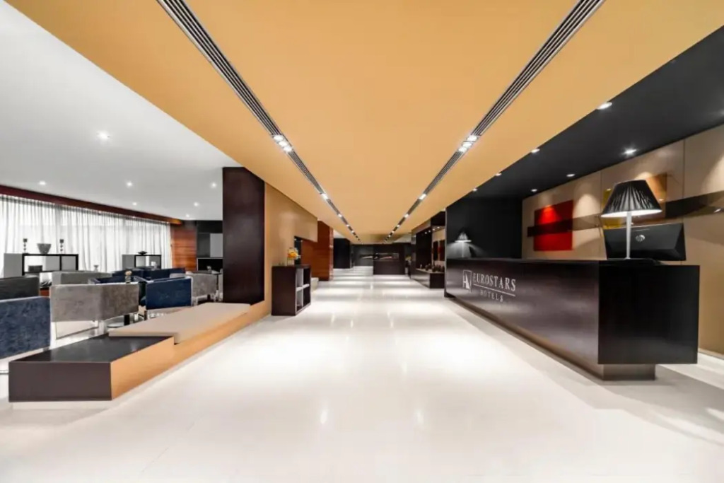 Information : Vil du gerne slappe af og gå på opdagelse i byen? Hotel «Eurostars Lisboa Parque» ligger i Lissabon. Dette hotel ligger 2 km fra centrum. Du kan tage en gåtur og udforske området hotellet — Parque, Edward VII Park og Sagrado Coração de Jesus.